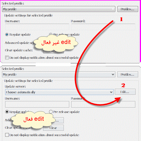 با این کار دکمه Edit برای آپدیت آفلاین فعال می شود و می توانید آدرس سرور خود را وارد نمایید.