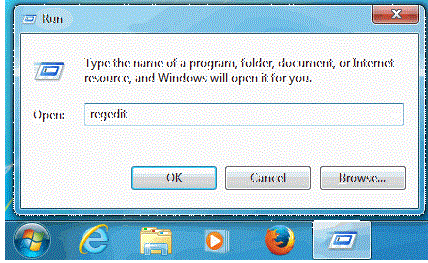 مرحله 3: بعد از ورود به ویندوز در منوی استارت Run را باز و اجرا و در آن عبارت regedit را تایپ کرده و Enter را بزنید.