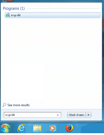 و یا در قسمت search ویندوز 7 عبارت regedit را تایپ کرده تا آن را بیابد و آن را اجرا کنید.
